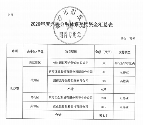 上月底,湖南省地方金融监督管理局、湖南省财政厅官网公示2020年度省级金融发展专项资金奖励名单,拟对担保公司给予200万元奖励。7月24日,长沙市财政局下发《关于拨付2020年省级完善金融体系奖励政策资金的通知》(长财金指〔2020〕4号),担保公司喜获200万元专项资金奖励。