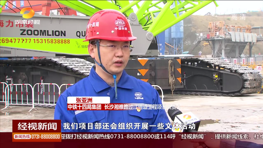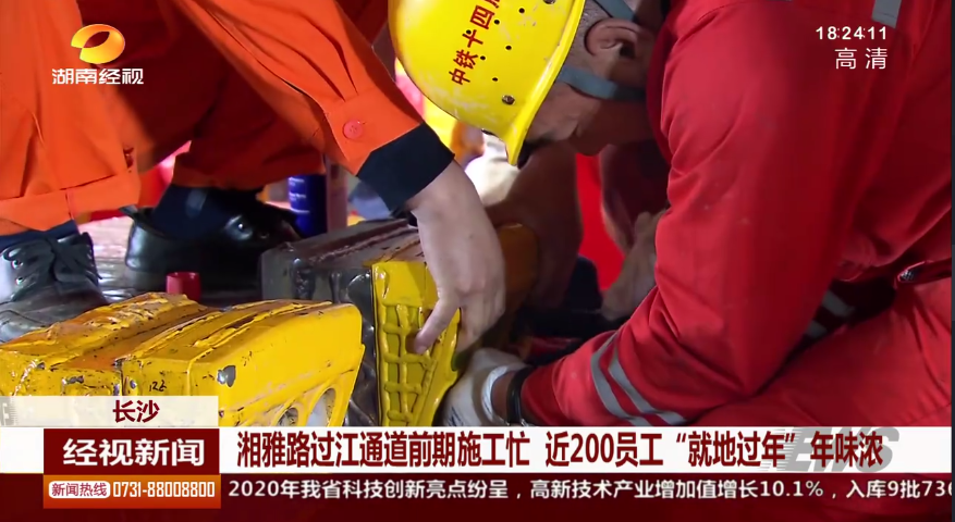 湖南经视新闻:长沙:湘雅路过江通道前期施工忙 近200员工“就地过年”年味浓