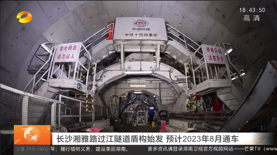 湖南新闻联播:长沙湘雅路过江隧道盾构始发 预计2023年8月通车 湖南卫视 3月30日