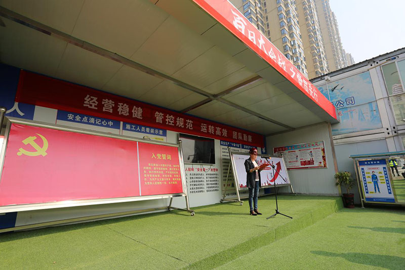 10月28日上午,湘雅路过江通道项目河西段现场,工地上党旗飘飘,誓词响亮,战报声声,捷报频传,长沙城投项目建设“百日大会战”竞赛活动之党员先行活动在此举行。